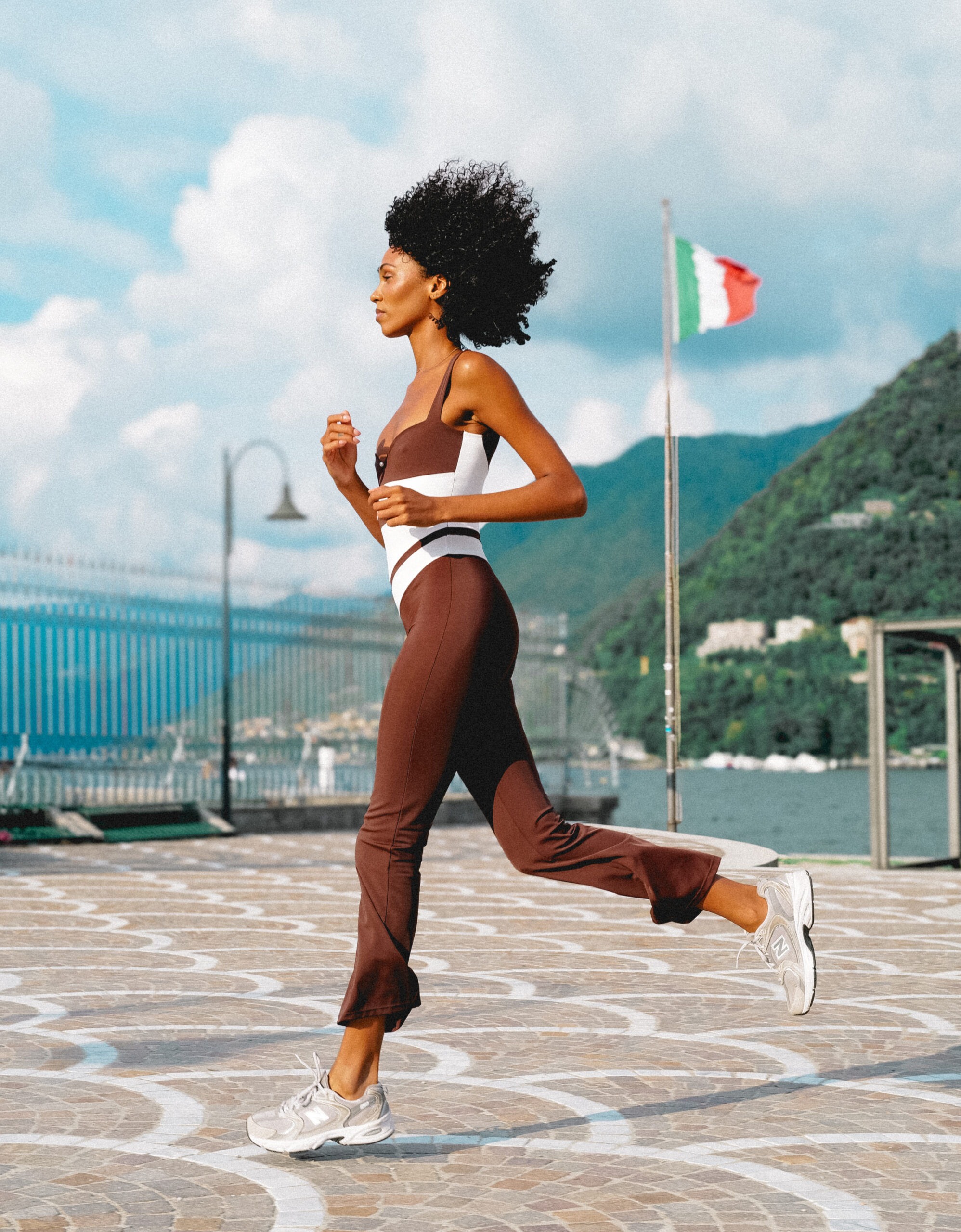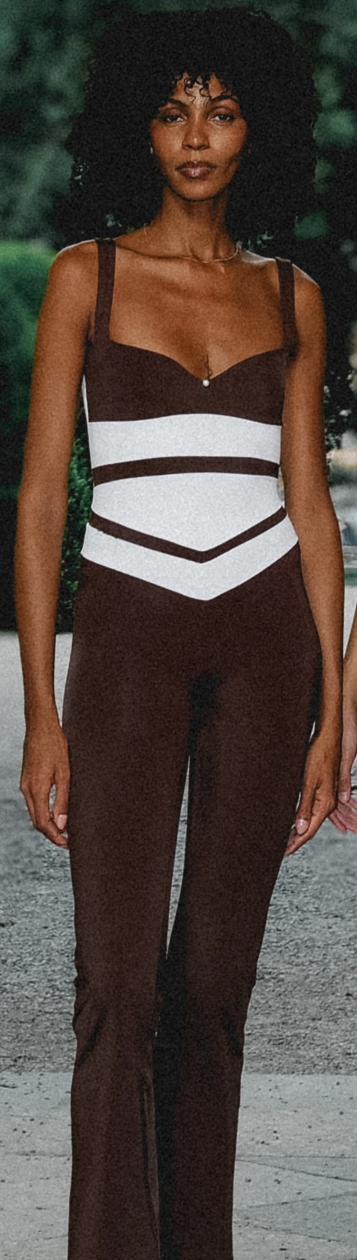 A signature piece of Lady Amarella, Rosalie is distinguished by its contrasting contour bands, strategically placed to cinch the waist and elongate the figure, creating the illusion of a timeless hourglass silhouette. The sleek, form-fitting design transitions seamlessly from studio sessions to waterfront strolls, making it the ultimate expression of elegance in every movement.